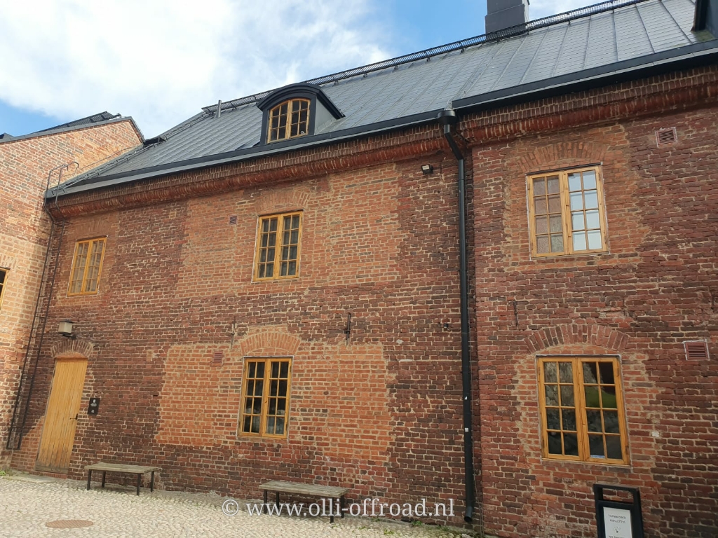 Dit keer eerst nog even langs de wat minder grote wegen om zo te kunnen lunchen en daarna een stukje via de autosnelweg. Zo waren we nog precies op tijd om het kasteel Hameen Linna binnen te kunnen. Vanaf de parking kon je al het machtige gebouw al zien. Dit werd in 1260 vorm gegeven door de Zweden als defensie tegen de Russen, alleen hebben er nooit militaire acties plaatsgevonden omdat de Zweed-Russische oorlog eerder in Karelië (streek die we later nog bezoeken, meer ten oosten van Finland) werd uitgevochten. Later werd het een gevangenis tot in de jaren 80. Toen kreeg het een grondige renovatie tot zijn huidige vorm. We bezochten de binnenplaats en liepen een rondje langs de buitenkant. Het museum en de tijdelijke tentoonstelling bezoeken is moeilijk met Timber. Hij mocht zelfs niet op de binnenplaats komen.