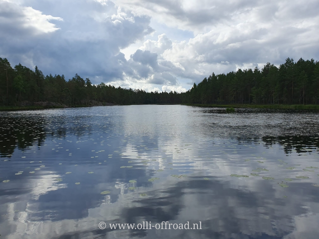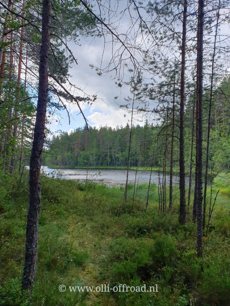 Ondanks het voorspelde droge, mooie weer voelde ik druppels, gek genoeg maar op 1 been. Het flesje van Timber bleek iets te vol en niet goed gesloten, probleem snel opgelost. Het was vandaag een wandeling over verschillende terreinen: bosgrond, rotsen en planken over veengrond of modder. De wandeling slingerde door de omgeving en passeerde zeker 7 verschillende meren. Na dik 2 uur alleen met ons 3 te wandelen in volledige stilte (op wat vogelgeluiden na) kwamen we hem tegen aan meer 2: de Homo Sapiens. Best schrikken. Eigenlijk waren ze met 4. Dit grote meer was een erg druk punt. Na de 4 wandelaars kwamen we nog 2 rugzakmeisjes tegen in gezelschap van een naakthond met jogging. Even later stond er boven het meer in het bos nog een tentje bevolkt door een meisje met hond (al leek het van ver eerder een kat). Aan de andere kant van het meer was een officiële stookplek samen met een berg hout en een droogtoilet.