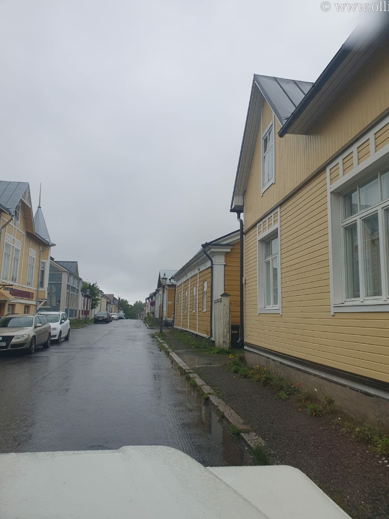 Dit keer richting Jakobstad (Pietarsaari op zijn Fins). Maar eigenlijk is dit de meest Zweedse stad van Finland. De banden met Zweden zijn sterk door de jarenlange ferrylijn Jakob lines. Jakobstad is genoemd naar Jacob de la Gardie een bevelhebber van het Zweeds Rijk. Na de dood van haar man verzocht zijn vrouw aan Koningin Kristina om de stad ter ere van haar man te mogen oprichten. Jakobstad was geboren en het stadhuis het eerste dat werd gezet. Na Rauma bezit deze stad nog een heel groot deel mooie houten huizen geschilderd in pasteltinten. De beste bewaarde (zo’n 300 tal) bevinden zich in Skata. Deze oude stad bevat smalle straatjes met de houten huizen. De kinderkopjes zijn ondertussen verdwenen wat het door de straten wandelen iets vergemakkelijkt. Ook nu nog steeds veel gemiezer dus eigenlijk een blits bezoek. Kerken konden niet worden bezocht wegens vroeger sluiten op zaterdag. Na de wandeling nog even naar de oude haven gereden op zoek naar Jakobstad Wapen een replica van een galioen. Gevonden maar zonder masten. Vroeger werden er nog boottochten mee georganiseerd maar de veiligheid begon in het gedrang te komen.