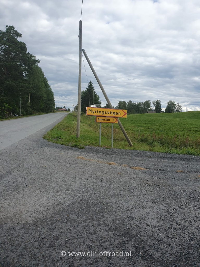 Blijkbaar hebben we vandaag ver omgereden want we kwamen een pijl tegen dat Amerika nog 1 kilometer was.