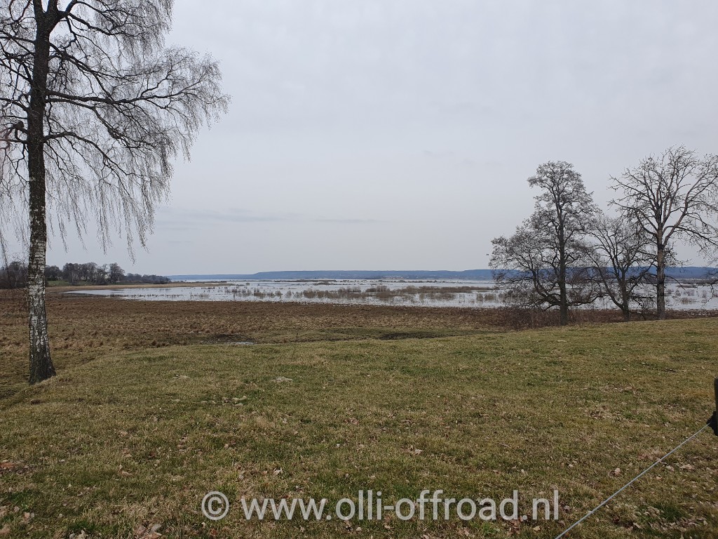 Eens Zweden goed en wel binnen is het natuurlijk tijd voor de eerste fika. Een koek en wat koffie en thee en een wandeling voor Timber. Onderweg zien we dat Skåne toch ook last heeft gehad van het vele water. Akkers staan ook hier onder water en er is nog niet veel gezaaid, net zoals in de polders thuis. Een nieuwe tankbeurt is ook weer nodig.