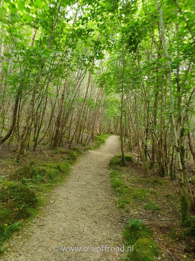 Nadien terug naar de auto om te lunchen. We besloten om tot aan Upper Lake te wandelen en te kijken welke wandelingen daar nog konden worden gedaan. Stapschoenen aan, rugzak vullen met voldoende drank voor ons en Timber (nodig met de zon die er was) en appels. En weer op pad richting Upper Lake. We passeerden eerst Lower Lake. Een iets kleiner meertje. Even Timber laten pootje baden en weer verder richting bezoekerscentrum Upper Lake. Daar hebben we een wandelkaart opgehaald. We besloten om wat wandelingen te combineren. Eerst stapten we nog tot Upper Lake. Ook hier wilde Timber niet al te ver in het water maar toch heeft hij zijn pootjes verfrist. Vanaf het Lake ging de tocht richting Poulanass waterfall. Een mooi stukje door het bos en een riviertje dat vanuit de waterval door een kloof loopt. Verder ging de wandeling een pittig stuk de hoogte in zo hadden we een overzicht over de vallei. Daarna gingen we terug naar beneden om een stuk van een andere wandeling te volgen. Opeens kwamen we een bank tegen. Even op gezeten en appeltje gegeten. Vanaf de bank had je een goed overzicht over Upper Lake. Voorts hebben we een poging gedaan (uiteindelijk gelukt) om een selfie te trekken met de nieuwe stick. Dat liep niet helemaal volgens plan en zorgde voor best wat hilarische momenten. Voordeel hierdoor is wel dat we lachend op de foto staan. Weer een beetje opgeknapt onze weg vervolgd. De oranje wandeling liep voornamelijk over een grindweg. Eerst nog een beetje klimmen en daarna haarspelbochten nemend naar beneden.