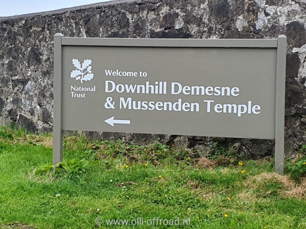 Het was de bedoeling om nog 1 stop te maken maar het worden er ook nu weer meer. We stoppen nog ter hoogte van de ruïne van een kasteel en aan het uitkijkpunt Magaheracross. Een mooie balustrade zorgt ervoor dat je veilig foto’s kan maken van de kliffen beneden. Ook ik neem een foto en dat is geen evidentie met zo’n afgrond onder ons. Onze laatste wandeling is naar Mussenden Temple. Deze staat op het domein van Downhill Demesne. Dit is een groot domein met een voormalig bisschoppelijk paleis. Nu een ruïne (vernietigd door brand) maar nog bewoond tot 1922. De graaf van Bristol en protestants bisschop had gevoel voor architectuur en liet begin 1775 dit huis bouwen. De tempel bouwde hij ter ere van zijn nicht wiens schoonheid hij aanbad. Naar de vier windrichtingen openen een deur en 3 ramen. Het gebouw werd gebruikt als bibliotheek.