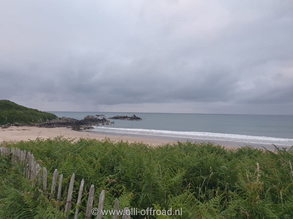 Vanaf nu volgen we de pijlen richting Moville. We rijden Derry uit via vele rondpunten en komen op de goede baan. Ondertussen volgen we de pijlen: “ Wild Atlantic Route volg Moville” Ook nu verloopt de grensovergang naar Ierland (ter hoogte van Muff) erg vlot. Dit keer zien we enkel een bord dat verwijst dat de snelheid nu in km/u is ipv miles/h. Meer is er niet te zien. Vlot en zonder enige stress. En nu zijn we op de Wild Atlantic Route. Een weg die we de komende weken nog meer zullen volgen. Op naar een slaapplek. We vinden er verschillende maar of te druk of te schuin (er zijn nogal veel hellingen in de steden). In Stroove vinden we een plekje op een parking vlak bij een strandje. We zijn nog niet goed en wel uitgestapt of er stopt een Ier met een Range Rover. Hij vindt onze auto de max. Even een praatje. Hij vindt het weer niet zo goed voor juni. Als we dan zeggen dat we blij zijn dat het meestal droog is, krijgen we als antwoord: “ that is true, could be worse”. Dat laatste zinnetje hoorde ik ook in 1981 bij mijn eerder bezoek en werd thuis erg vaak gebruikt. Nadien even met Timber op het strand en dan een snelle hap: wrap met rauwe groenten. Lekker. Moe maar tevreden om weer een mooie, interessante dag kruipen we ons bed in.