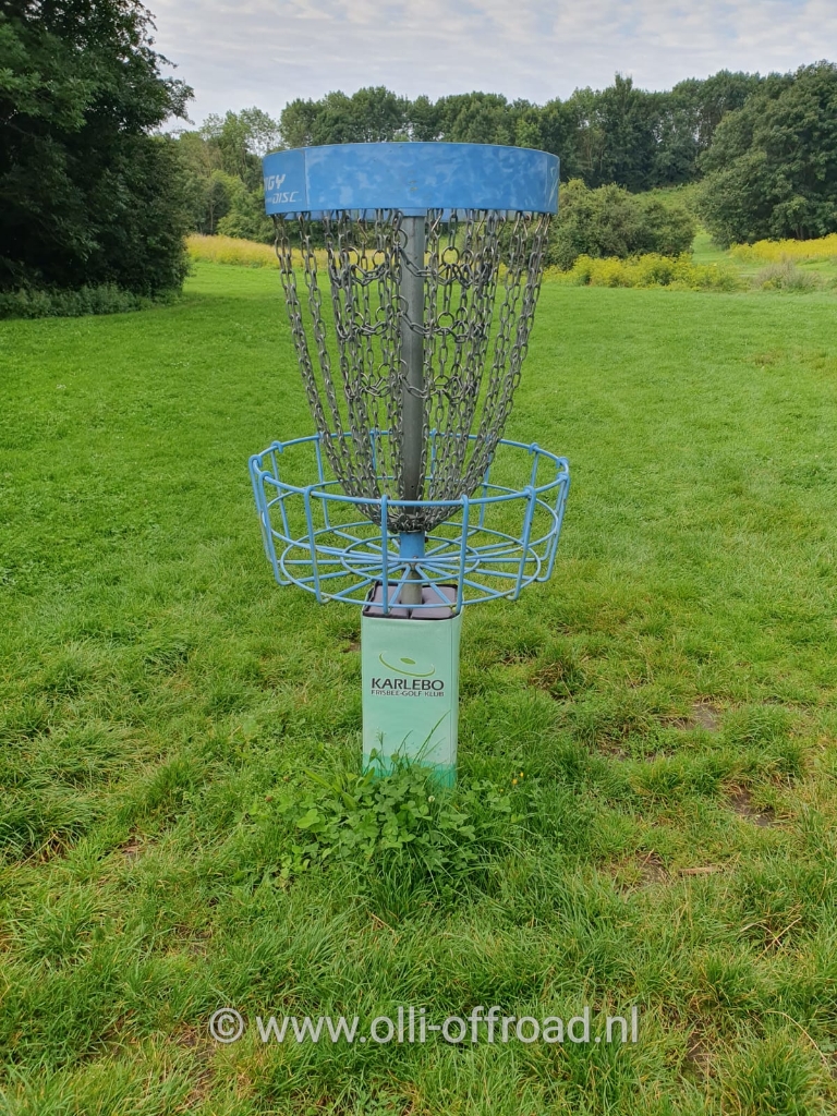 Een sport vooral bekend in het Noorden van Europa. Overal op het domein staan korven maar ook paaltjes in 3 kleuren (blijkbaar volgens de moeilijkheidsgraad). Aan elk paaltje ligt een kunstgrasmat van ongeveer 1,5 bij 2,5m, deze wordt de Tee genoemd. Klinkt misschien ingewikkeld maar het is zeker niet voor mij weggelegd met mijn erbarmelijke werptechniek.