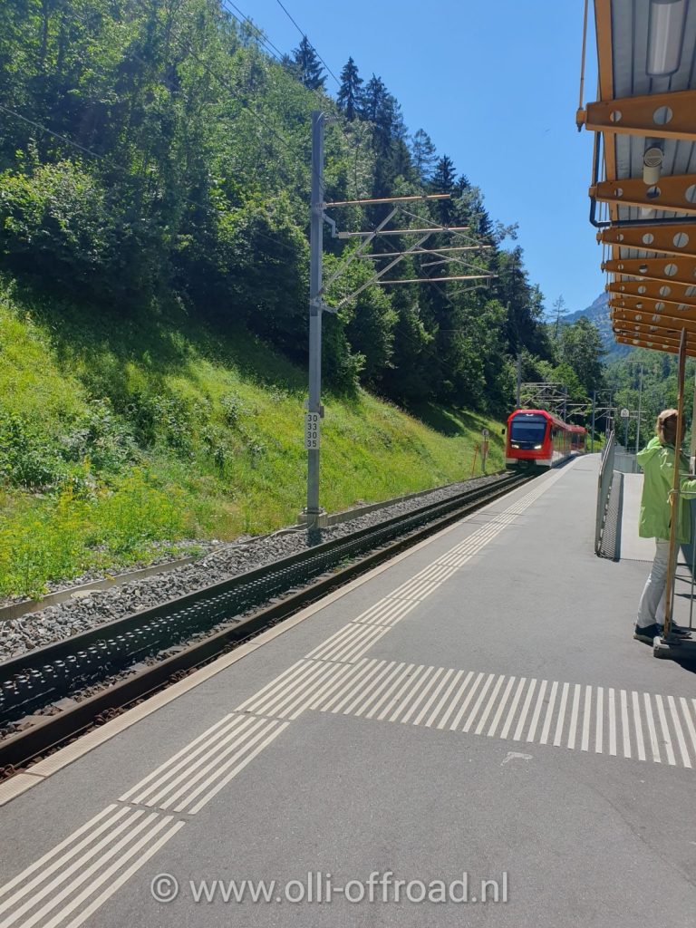Na een stevige wandeling bereiken we Bettmeralp. Een dorp waar geen auto’s toegelaten zijn. Er rijden al vele jaren enkel elektrische autootjes rond. Ze dienen ook om toeristen met hun bagage naar hun logeerplek te brengen. Het is er erg druk. We moeten nog even wachten vooraleer de gondel ons weer naar het dal kan brengen. We eten een appel, maken een sanitaire stop en gaan dan in de rij staan om in te stappen. Hier is er nog wel die grote rode tram die ons naar het dal zal brengen. Vanaf het bergstation werp ik een blik naar de kabel. Het lijkt wel of we zo goed als loodrecht naar beneden zullen gaan. Ter hoogte van de palen is het weer even kriebels in de buik en even aan niets denken als het bakje heen en weer schudt. Maar we bereiken veilig het dalstation. En hier geldt dan de Zwitserse efficiëntie: we hebben een kleine 5 minuten om van de kabelbaan in hetzelfde gebouw naar de trein te stappen. Precies op tijd komt trein aan. Via het smalspoor rijden we naar Fiesch. Nog even een flinke klim naar onze logeerplekken. We eten in 2 ploegen: eerst de kleintjes die dan kunnen gaan slapen, daarna de rest met de moedige wandelaars. In onze chalet sluiten we de avond af met een spelletje en een ijsje. Een meer dan geslaagde dag.