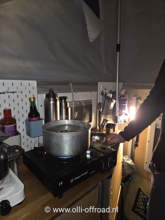 Bij het ontwaken merken we dat het ’s nachts behoorlijk gedooid heeft. Het asfalt van de camperplek is zo goed als schoongemaakt. Dat maakt wel dat we moeten uitkijken voor enkele verraderlijke ijsplekken. Het wordt binnen ontbijten en nadien krijgt Timber een wandeling in de buurt.