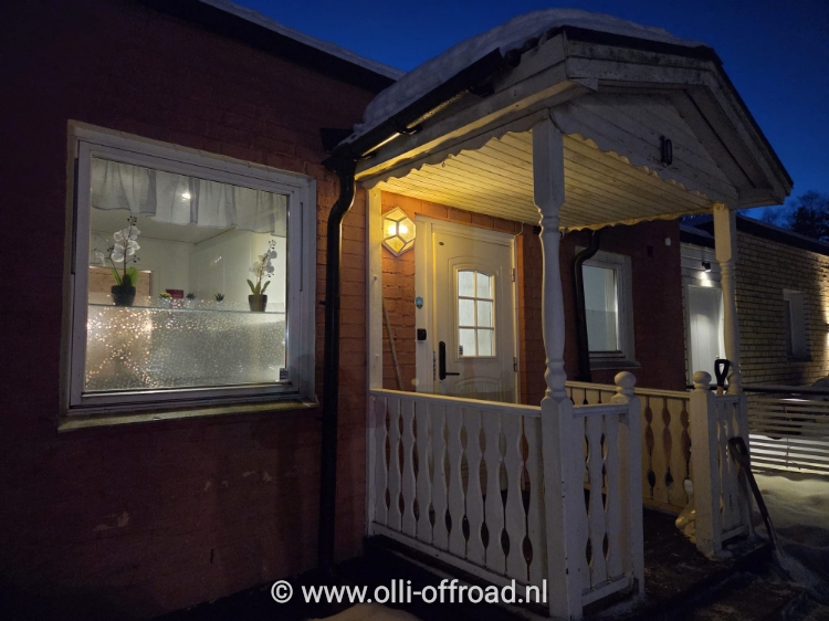 Bij het boeken zagen we de foto’s van de kamers maar staan nu versteld over hoe ruim het gebouw wel is. De camper wordt leeggehaald, de kasten ingeladen. Ik begin alvast met koken om straks samen met de jeugd te kunnen eten. Het wordt en blij weerzien en na het eten maken we met z’n zes en Timber nog een avondwandeling in de buurt.Terwijl wij richting onze bestemming reden, vertrok de jeugd naar Schiphol. Zij hadden iets voor 11uur een vlucht naar Stockholm. Daar moesten ze nog 3,5uur wachten voor de overstap naar Luleå. We kozen voor een wat langere overstaptijd want bij een andere verbinding was het maar 1uur. Arlanda is best een grote luchthaven en dat vonden we toch wat riskant, zeker nadat we ons bij enkelen informeerden die wel vaker naar Stockholm vliegen. Het was wat saai het wachten zeker toen iets na drie de duisternis kwam en ze ook niet meer buiten konden kijken. Een vlotte vlucht en al even vlotte ontvangst van huurauto (die ze wel eerst moesten sneeuwvrij maken) maakte dat de jeugd zich iets voor 7 bij ons voegden. Onze week samen kon beginnen.