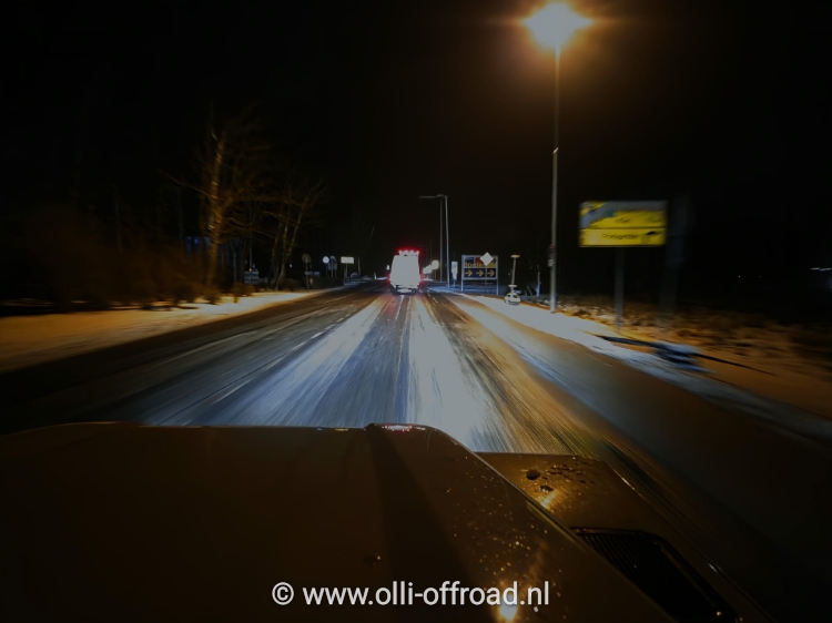 Eens van boord, rijdt het in de haven nog erg slecht. Gelukkig is de weg die volgt sneeuwschoon en rijdt het, ook al is het niet verlicht, best goed. We rijden nog een uurtje naar een slaapplek nabij Oldenburg, tussen Puttgarden en Lübeck. Een betalende camperplek, op de parkeerplaats van een museum, met stroom. Ik laat Timber nog even uit in de buurt en dan is het bedtijd.