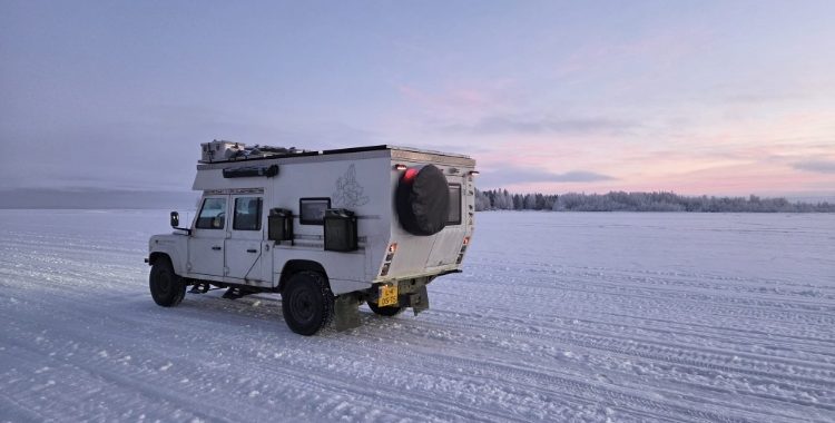 Als ik bij het ontwaken op de thermometer kijk, dan geeft die op dat moment -22°C aan. Dat is best frisjes. Vooraleer iedereen wakker is, probeer ik er voor te zorgen dat alles wat al kan klaarstaan om in de camper te gaan, klaarstaat. Als Leon wakker wordt, worden de laatste bakken bij de anderen gevoegd. Dan duffel ik me goed in en ga met Timber op pad. Leon zal ondertussen al zoveel mogelijk op de juiste plek in de camper zetten. Het is inderdaad koud. De wind dringt zelfs door alle laagjes door, maar eens even buiten, gaat het toch wel. Ik wandel een laatste keer over het bevroren water en geniet van de zonsopgang. Timber van de vers gevallen sneeuw. Onze angst bij de voorbereiding was nergens voor nodig, de sneeuw blijft gewoon niet aan zijn haren kleven of nestelt zich niet tussen de kussentjes. En vermits ze in de omgeving van het huisje geen zout strooien, heeft hij ook daar geen last van. We ontbijten nog een laatste keer samen en brengen de overgebleven spullen naar de camper. We zetten tijdig Timber in de camper zodat die gerust is en tevens tot rust kan komen en het voor ons allen even makkelijker is om in en uit het huis te lopen. Nog een laatste check en dan is het afscheid nemen van de jeugd.